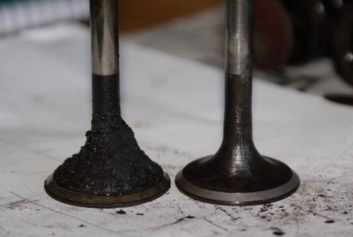 În al patrulea rând, așezându-se pe supape, carbonul le blochează frecvent, fâcându-le să nu se închidă complet și scăzându-le astfel capacitatea de a etanșa camera de ardere; iar acest lucru duce la disfuncționalitatea cilindrului. În plus, supapele cu scurgere pur și simplu se ard în timp.