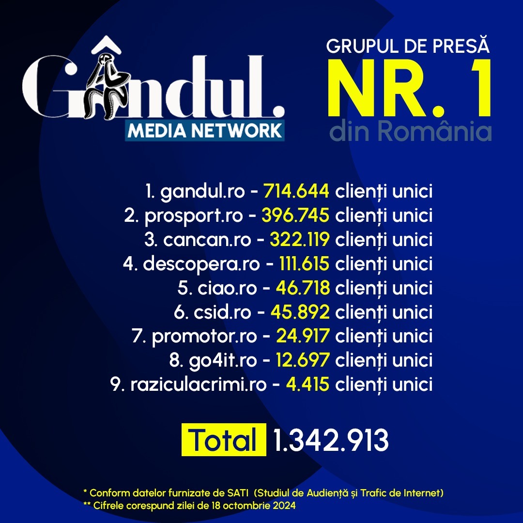 Vineri, 18 octombrie 2024, grupul Gândul Media Network a redevenit grupul de presă nr. 1 din România. Site-urile din cadrul grupului au înregistrat, în total, cel mai mare număr de clienți unici, devansând grupuri precum Digi România, Ringier, Pro TV sau Adevărul.