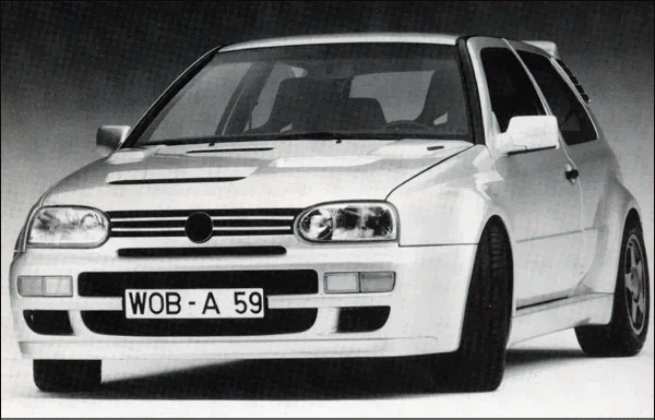 VW Golf A59 (1993). Prototip de maşină de curse pentru WRC, trebuia să fie produs într-o ediţie limitată pentru şosea la un preţ de 80.000 de mărci germane. Avea un motor turbo de 2,0 litri de 275 CP, un eleron inedit şi tracţiune integrală