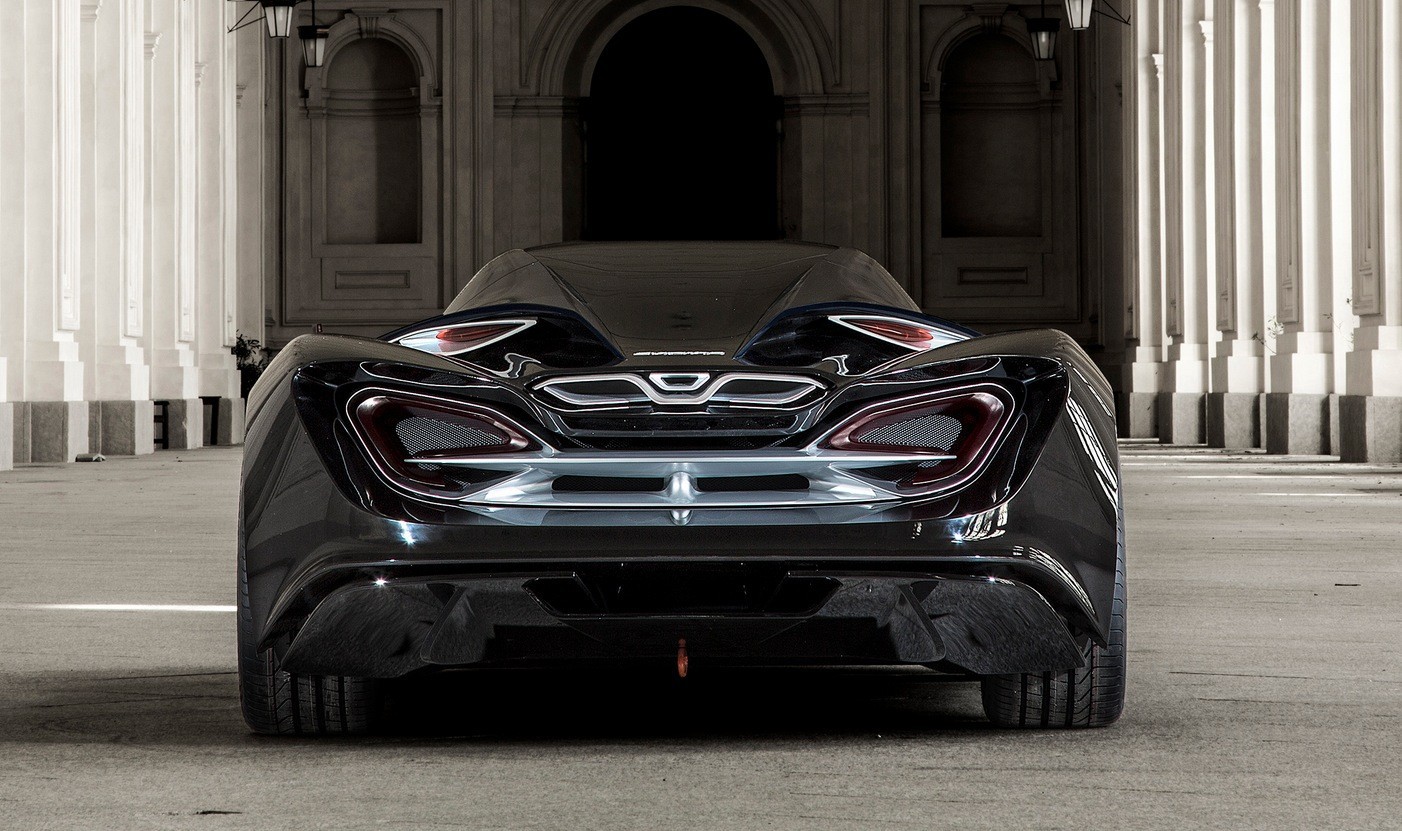 Acum, o echipă mixtă de designeri a dat viaţă lui Syrma, un concept car care împachetează circa 900 de cai-putere, livraţi de un V8 de 4,0 litri şi de un motor electric.