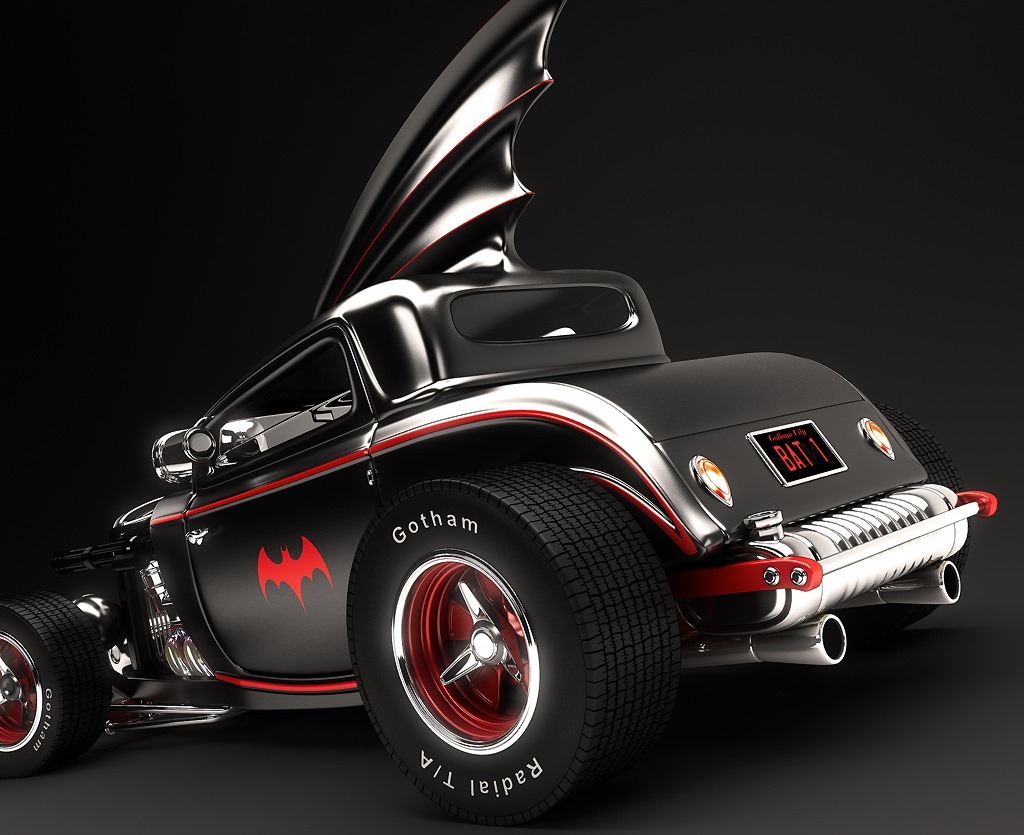 Ideea unui hot-rod pentru Omul-Liliac îi aparţine lui Mark La Frenais, care s-a pus serios pe treabă şi a realizat câteva randări cu concepţia sa despre un Batmobil sub formă de hot-rod.