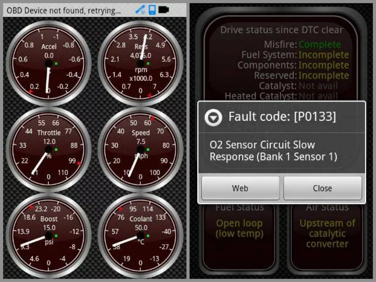 Cele două aplicaţii îţi permit să vizualizezi pe ecranul telefonului date ca viteza maşinii, temperatura uleiului, temperatura apei, poziţia pedalei de acceleraţie şi turaţia motorului. Totodată, poţi să diagnostichezi motorul maşinii tale pentru probleme, la fel cum ar face un mecanic la service.