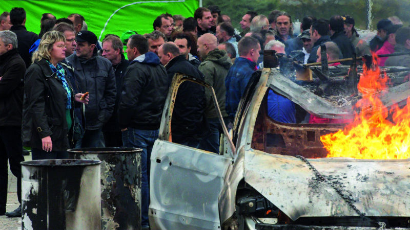 Nu, nu e revoluţia din Ucraina, sunt protestele muncitorilor nemulţumiţi de închiderea uzinei Ford din Genk (Belgia)