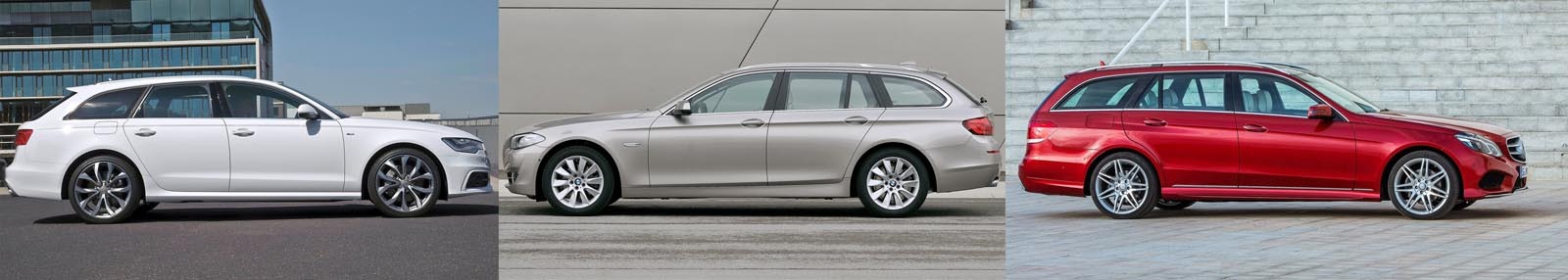 Versiunile break: Audi A6 Avant (portbagaj: 565 litri), BMW Seria 5 Touring (portbagaj: 560 litri), Mercedes-Benz E-Class T-Modell (portbagaj: 695 litri)