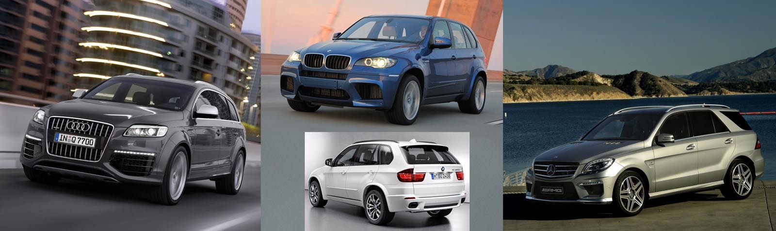 Versiunile de top ale SUV-urilor medii: Audi Q7 V12 TDI (500 CP), BMW X5M (555 CP) şi BMW X5 M50d (381 CP), Mercedes-Benz ML 63 AMG (525 CP, sau 557 CP cu ”AMG Performance”)