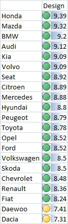 Respondenţii Studiului de Satisfacţie au punctat designul maşinii lor personale, iar clasamentul este următorul: