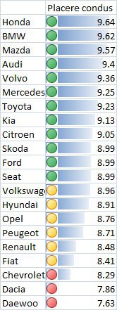 Plăcerea de a conduce este un element cheie pentru pasionaţii de maşini, iar fanii ProMotor au ordonat mărcile auto într-un clasament care poate da naştere la lupte de orgolii: