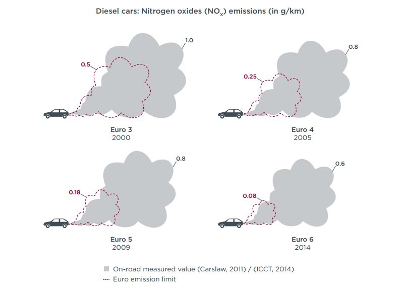 Din 2000 până acum, normele Euro au impus scăderea emisiilor de NOx cu 85%. Însă, în condiţii reale, acestea au scăzut cu numai 40%, în ciuda noilor tehnologii de depoluare. Cineva nu spune adevărul…