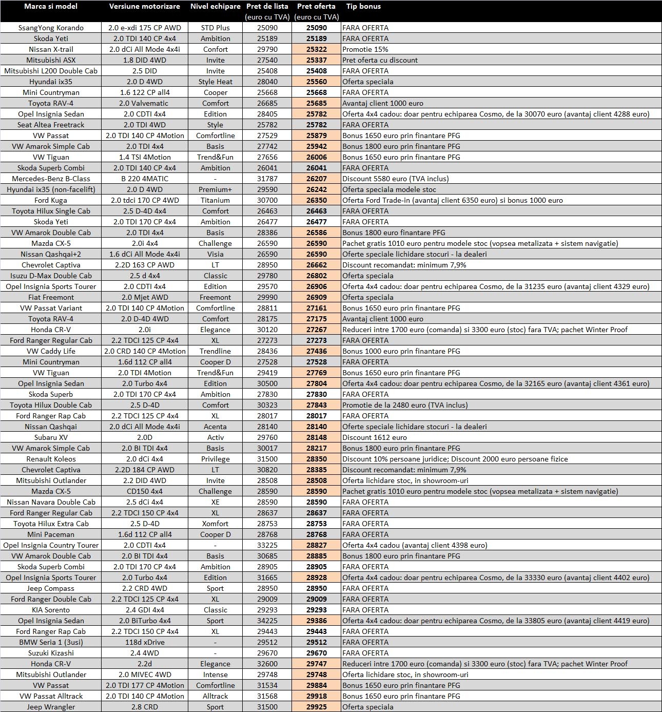 Vezi ofertele între 30-35.000 de euro PE PAGINA URMĂTOARE