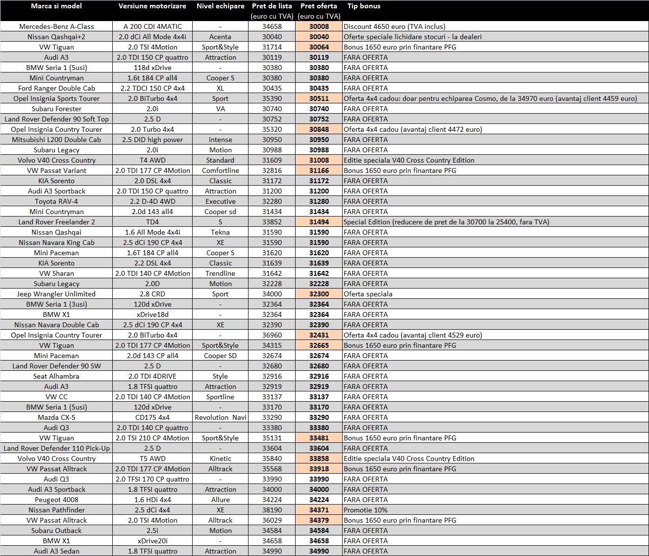 Vezi ofertele între 35-40.000 de euro PE PAGINA URMĂTOARE