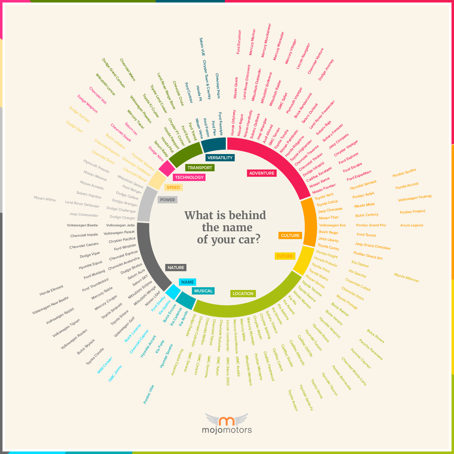 Specialiştii de la Mojomotors au venit cu o idee inedită: de a împărţi pe categorii clare, în mod ştiinţific, denumirile maşinilor comercializate pe piaţa americană. De ce? Pentru că astfel putem înţelege mai bine ce au avut în vedere departamentele de marketing ale constructorilor auto când au decis alegerea unei denumiri – denumire care ne influenţează puternic, fără ca să ne dăm seama…