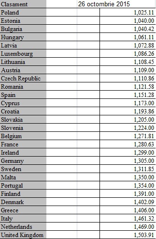 Potrivit Oil Bulletin, raportul periodic asupra preţurilor carburanţilor furnizat de biroul de statistică al Uniunii Europene, Eurostat, la data de 26 octombrie 2015, preţul benzinei Euro 95 în România era de 1.121,58 euro la mia de litri, sau 1,12 euro pe litru.