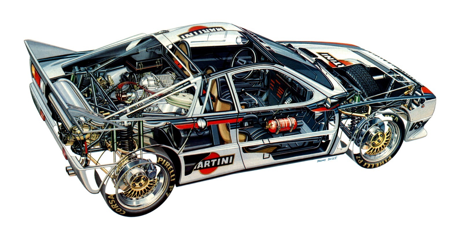 Lancia 037 (schemă) – ultima Lancia care a câştigat respect în motorsport (titlu WRC 1983, pe podium între 84-86)