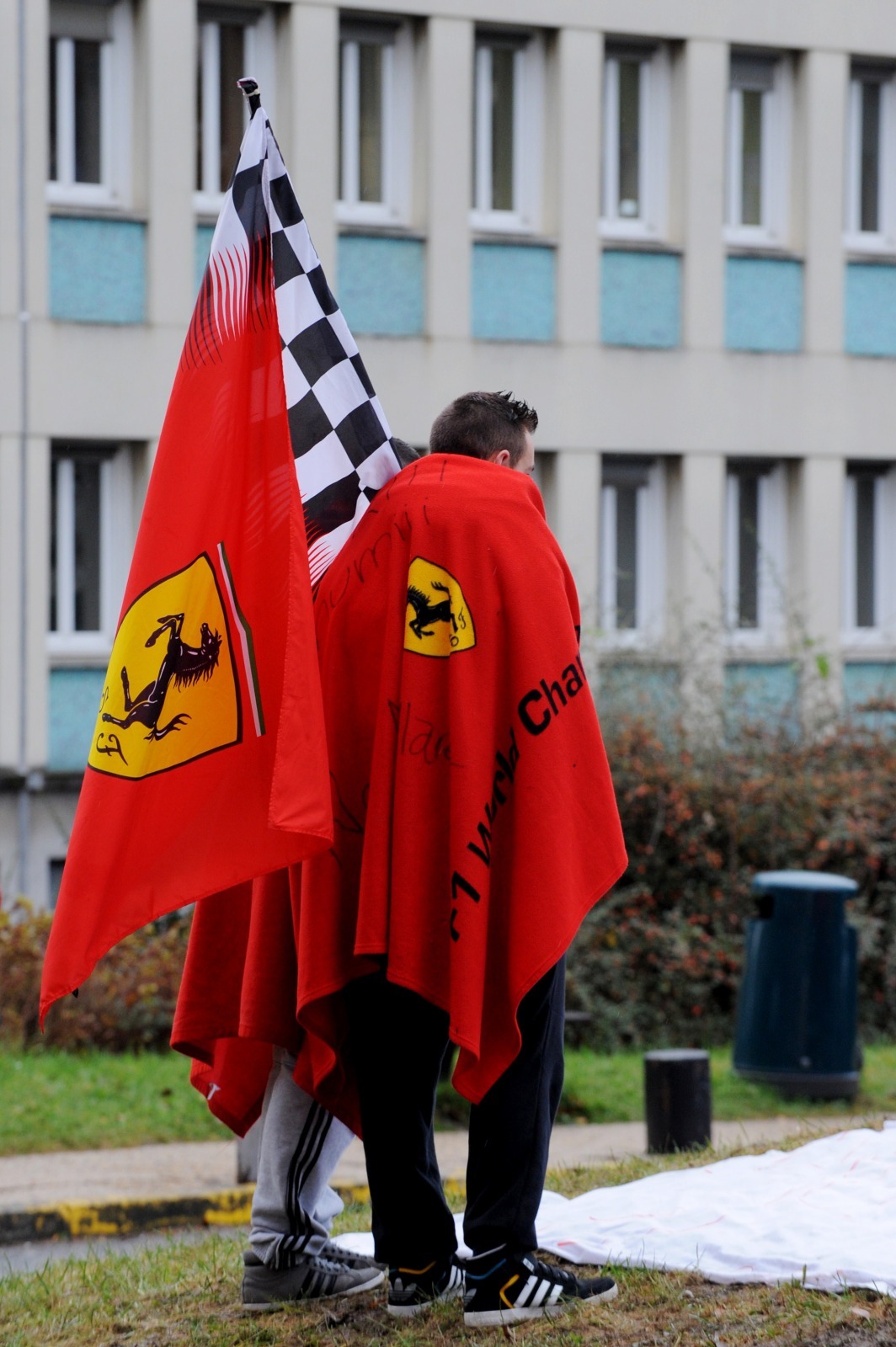 Fanii campionului, în faţa spitalului în care a fost internat după accidentul din Alpi