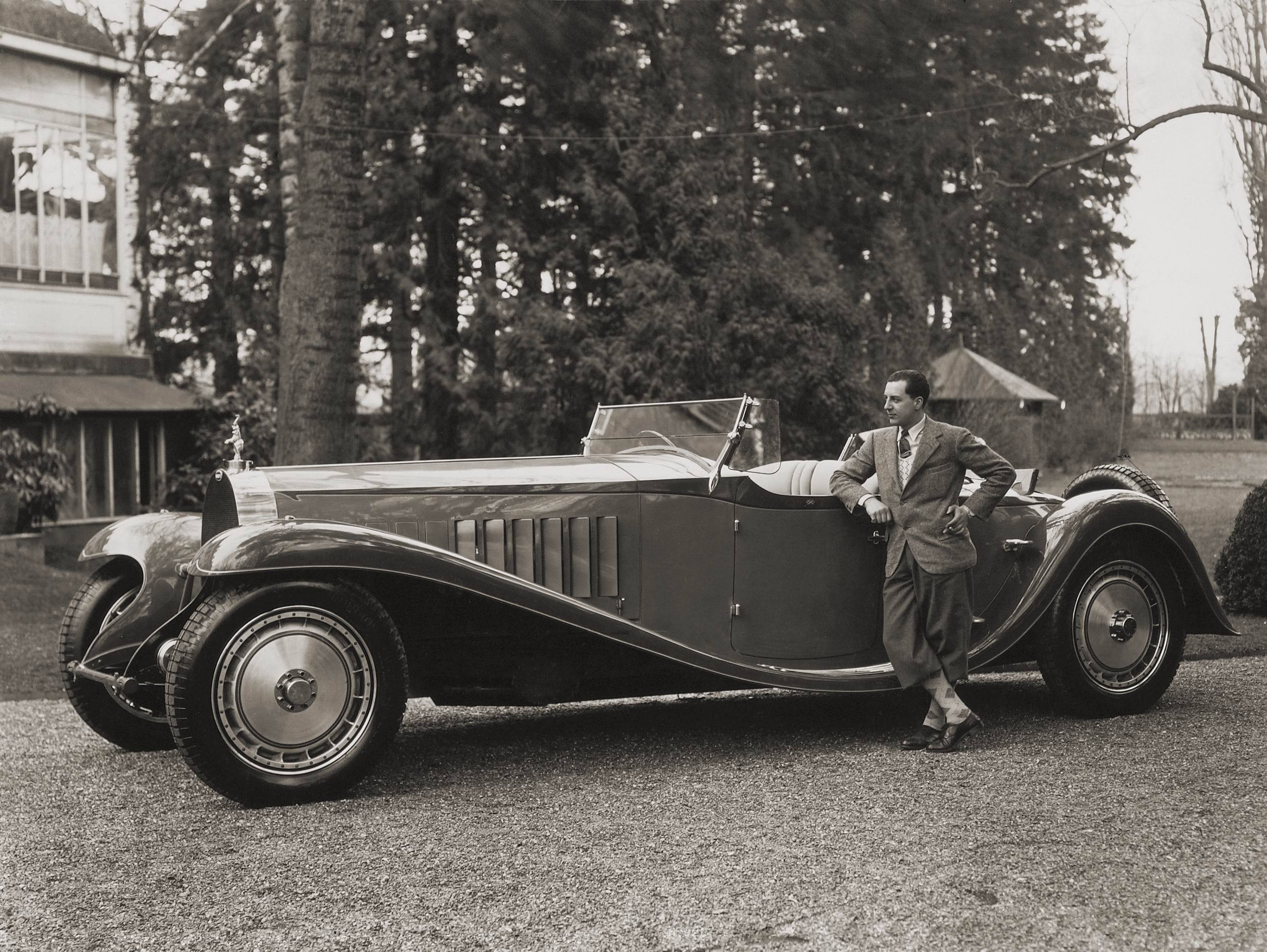 Jean Bugatti alături de superbul Type 41 în variantă roadster