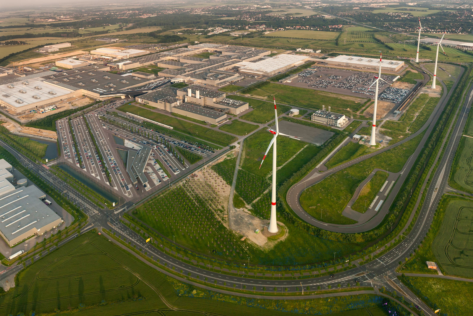 Dar n-am ajuns aici pentru a vizita locurile de unde a pornit revoluţia germană care a dus la căderea Zidului, ci pentru a vizita o altă revoluţie, care are loc la câţiva paşi de oraş. Şi n-are loc pe străzi, ci într-o uzină. E uşor de văzut, de la mare depărtare, pentru că cele patru eoliene uriaşe o anunţă din timp: aici avem cea mai nouă şi mai modernă fabrică BMW din Europa, şi una dintre cele mai moderne din lume. Una în care, printre alte modele, se produc şi noile i3 şi i8.