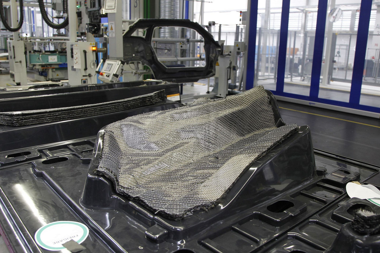 Nu, BMW n-a îmbrăcat i3-ul în cearşafuri, ci în CFRP, adică în Carbon-fiber-reinforced Plastic, un material alcătuit din fibre de carbon ţesute într-un mod specific, în straturi suprapuse orientate diferit (deci nu întrepătrunse, ca într-o ţesătură obişnuită) şi mulate într-o răşină specială. Trecerea de la fibrele de carbon extrem de subţiri (de şapte ori mai subţiri decât firul de păr uman), la un panou de caroserie care are o duritate şi o flexibilitate superioare oţelului, dar pe care îl poţi ridica uşor cu o singură mână, deşi vorbim de jumătate de maşină, asta e adevărata revoluţie care are loc la uzina din Leipzig!