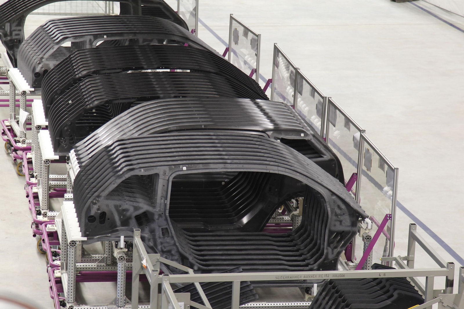 Revoluţia continuă în privinţa procesului de producţie: linia de asamblare este cu 50% mai scurtă decât una convenţională, cu toate reducerile de cost care decurg de aici. Roboţii sunt utilizaţi extensiv, iar faptul că nu se foloseşte deloc sudura, ci doar lipirea componentelor, face ca peisajul de la interiorul uzinei din Leipzig să fie unul mai degrabă ciudat: parcă ai fi într-o fabrică de jucării, dar unde jucăriile sunt destinate adulţilor care vor să fie în acelaşi timp şi eco, şi sport.