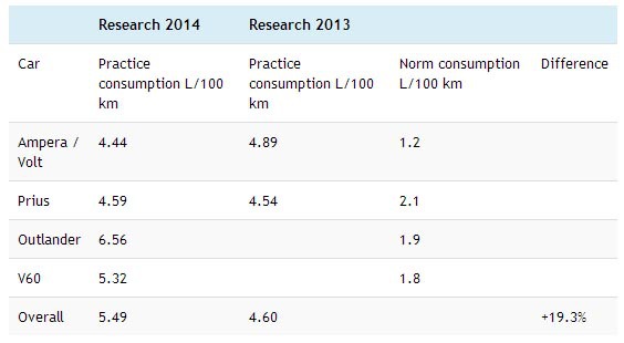 Dacă în 2013, studiul a fost realizat pe doar trei modele (Chevrolet Volt, Opel Ampera şi Toyota Prius Plug-in Hybrid), iată că în 2014 se mai adaugă două modele, lansate pe piaţa olandeză în acest an: Mitsubishi Outlander PHEV (recent testat de ProMotor) şi Volvo V60 Plug-in Hybrid.