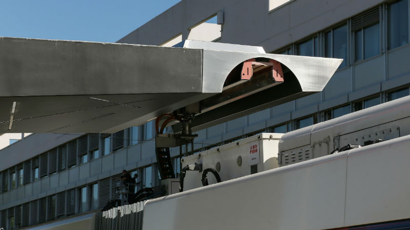 Cât de simplu şi de eficient: în timp ce pasagerii urcă sau coboară, braţul ăsta încarcă bateriile. Şi nu e nici un risc de curentare