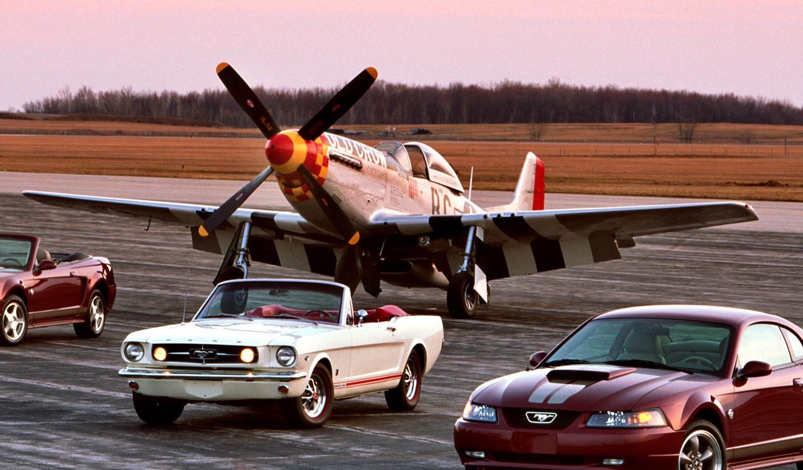 Numele Ford Mustang e un tribut adus avionului de vânătoare, deşi comercial este căutată noţiunea calului alb, simbol al libertăţii câştigate