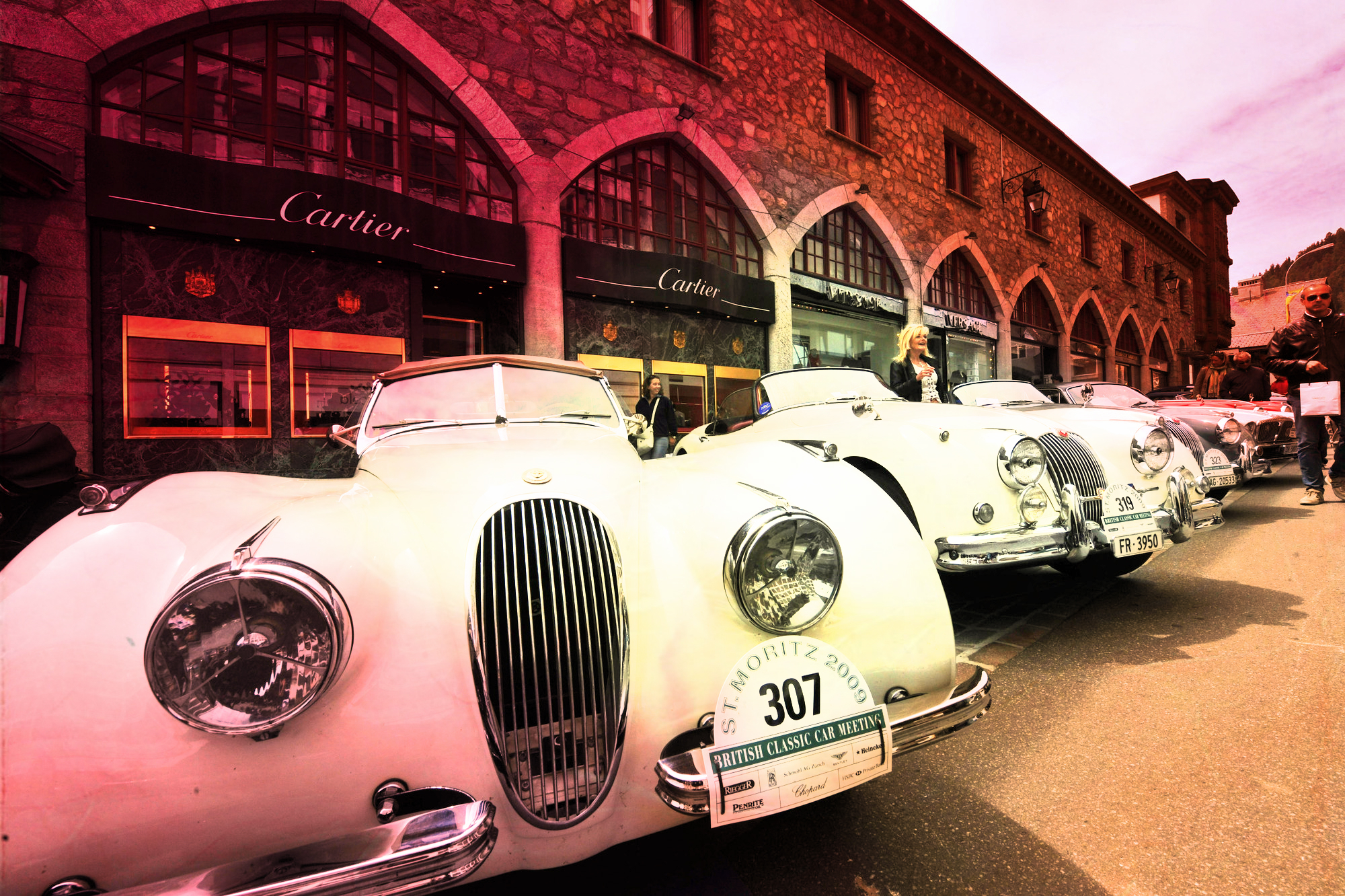 În două zile petrecute în Saint Moritz poţi vedea mai multe maşini clasice câte ai vedea într-o lună în oricare alt loc bogat de pe planetă. Avem asociaţii ale proprietarilor de maşini sport italiene, britanice şi germane care organizează evenimente ce adună în această zonă iubitori ai supermaşinilor din lumea întreagă: raliuri sus în munţi şi concursuri de eleganţă în staţiunile de la malul lacurilor (cum ar fi Villa d’Este, aflată la doar 50 de kilometri şi un pas montan distanţă). La urma urmei, ce poate fi mai minunat decât să te bucuri de nişte maşini adevărate, de pe timpul în care sistemele electronice de asistenţă la condus nu erau încă existente, pe unele dintre cele mai senzaţionale şosele cunoscute de omenire?