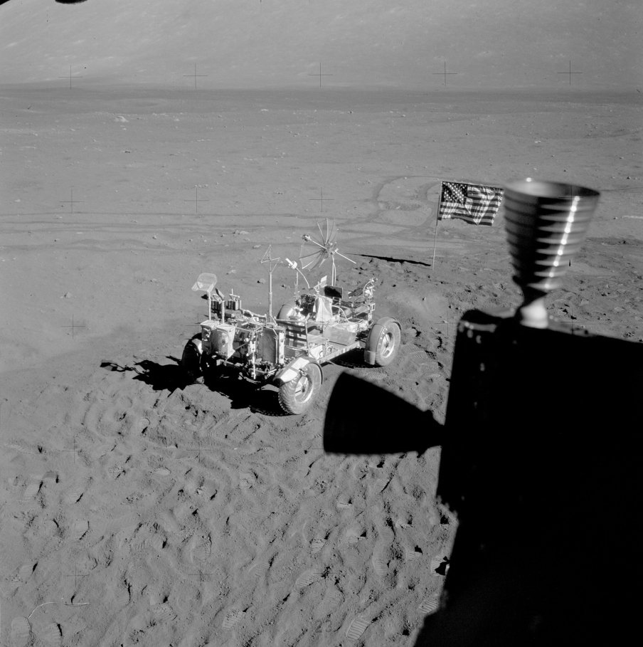 Lunar Roving Vehicle, pregătit pentru ultima zi a ultimei misiuni Apollo pe Lună, 1972. Sursa foto: Apolloarchive