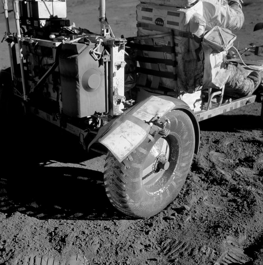 Atunci când au avut accidente, inginerii NASA au reparat roverul lunar cum s-au priceput… :). Sursa foto: ApolloArchive