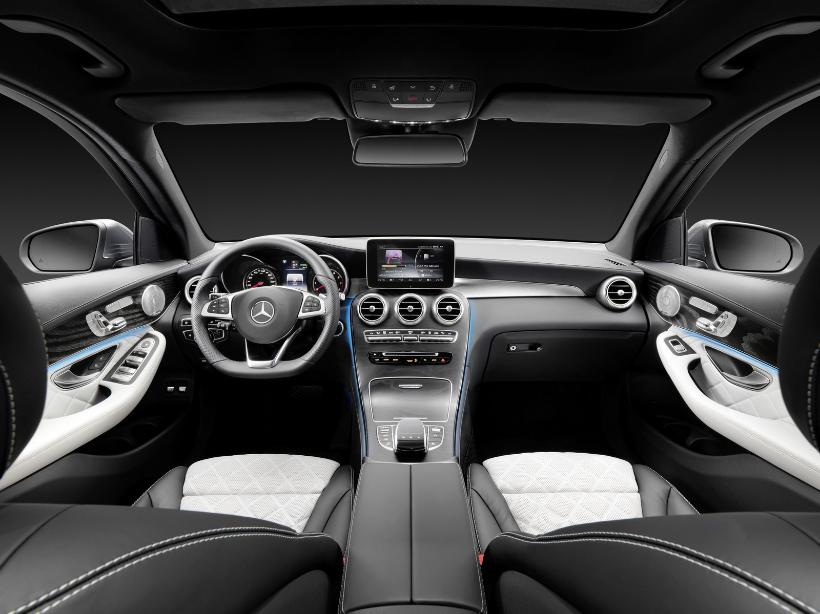 Interiorul are foarte multe elemente preluate de pe noul C-Class şi oferă o ambianţă garnisită cu materiale de cea mai bună calitate (potrivit nemţilor). Dar mai important decât asta este, probabil, spaţiul disponibil, care a crescut în toate direcţiile – pentru genunchi, coate, umeri şi cap – datorită ampatamentului mai lung decât la GLK.