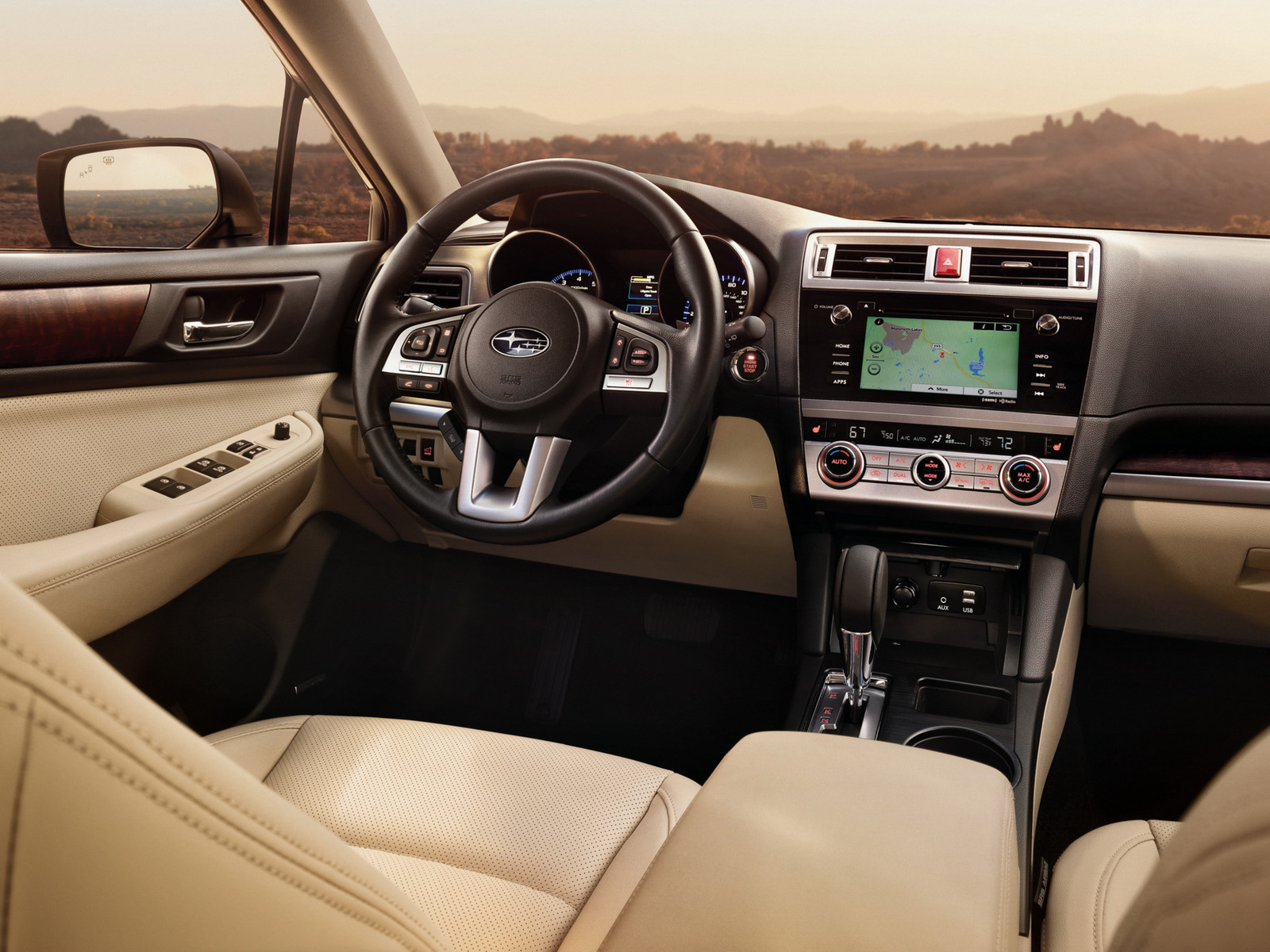 În interior, familista japoneză este cât se poate de clasică, în stilul caracteristic Subaru. Altfel spus, există un ecran color pentru sistemul infotainment de pe consola centrală şi două cadrane de bord clasice despărţite de un alt ecran color. În ceea ce priveşte tehnologia, a cincea generaţie Outback primeşte o nouă cameră video stereo care duce la îmbunătăţirea sistemului de frânare automată în caz de accident şi a cruise controlului adaptiv. Totodată, există opţiunea instalării unui sistem care avertizează şoferul de prezenţa unei maşini în unghiul mort al oglinzilor retrovizoare.