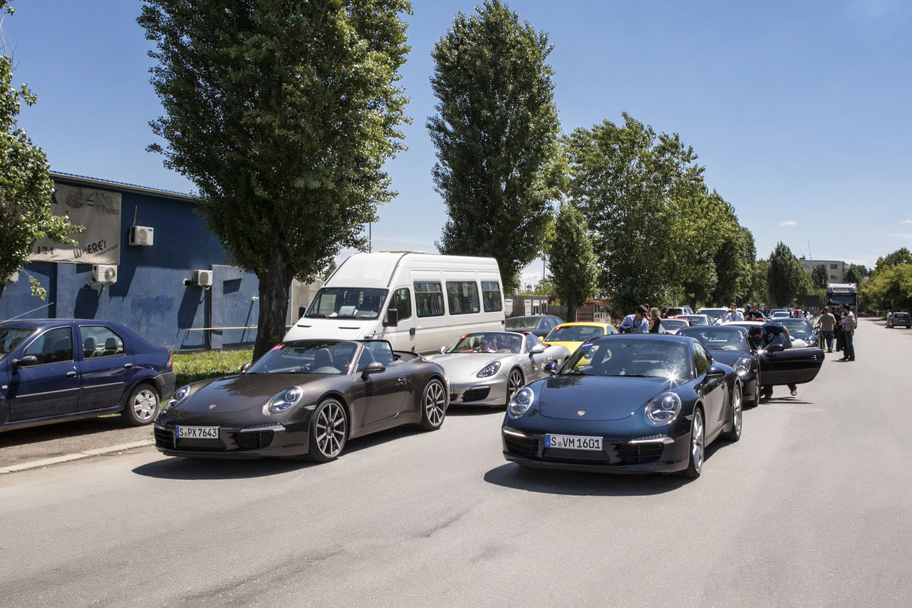 Porsche România a deschis un nou centru pentru mărcile Audi, Porsche, Bentley şi Lamborghini, într-un spaţiu imens – cel mai mare din Europa de Sud-Est, şi nu doar mare, ci şi foarte bine organizat (ai senzaţia că nu eşti în România…), aşa că se impunea o celebrare. Şi celebrarea a îmbrăcat forma unei ture cu modelele Porsche, o treabă pe care clienţii de Porsche o experimentează de obicei în cadrul Porsche World Roadshow – maşini aduse din Vest, organizare cu instructori vestici de la Porsche, cadrul fiind însă unul profund românesc.