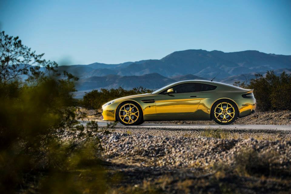 Acest exemplar Aston Martin V8 Vantage care-ţi ia ochii (ştiţi vorba, ”la soare te poţi uita, dar la el ba”…) a fost preparat de firma Elite Audio & Customs din Las Vegas. Da, exact, capitala cazinourilor şi a desfrânării…