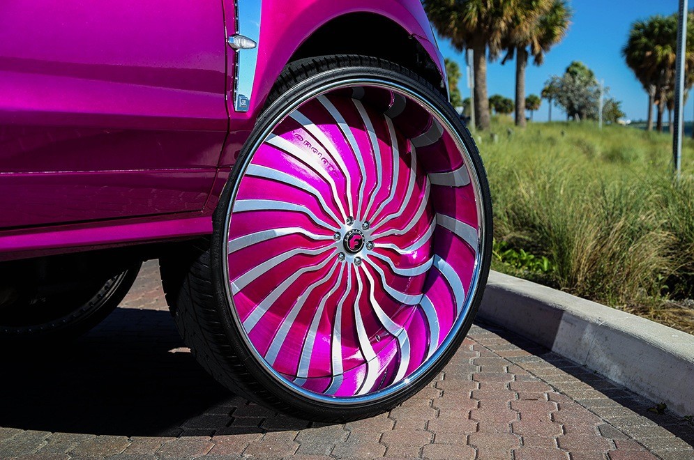Hell Rell preferă jantele mari, aşa că Forgiato i-a îndeplinit dorinţa cu acest set de jante cu diametru de 34 de inci. „Au un look care pare lipsit de efort, dar nu ignoră efortul [manufacturării]”, explică cei de la Forgiato. Noi vedem nişte jăntoace roz de 34 de inci. Pentru noi e suficient atât, fără nicio explicaţie.