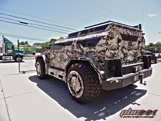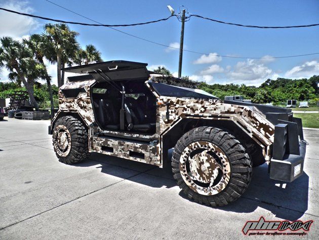 Pentru a se integra cât mai uşor în peisaj, caroseria beneficiază de un camuflaj psihedelic. În faţă, pe lângă accesoriile specifice offrroad, blocurile optice au fost duse la extrem, integrând atât proiectoare de noapte, cât şi lumini cu infraroşu.