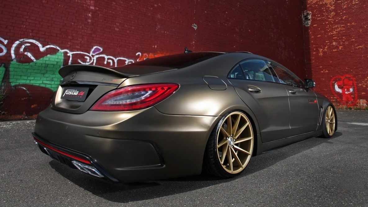 Kit-ul exterior a fost preluat de la Prior Design, după care maşinii i s-a aplicat un strat de folie cu accente de negru şi roşu. CLS-ul a fost încălţat cu jante de 20 de inci de la Vossen (auriu mat) şi aşezat pe o suspensie cu gardă la sol reglabilă.