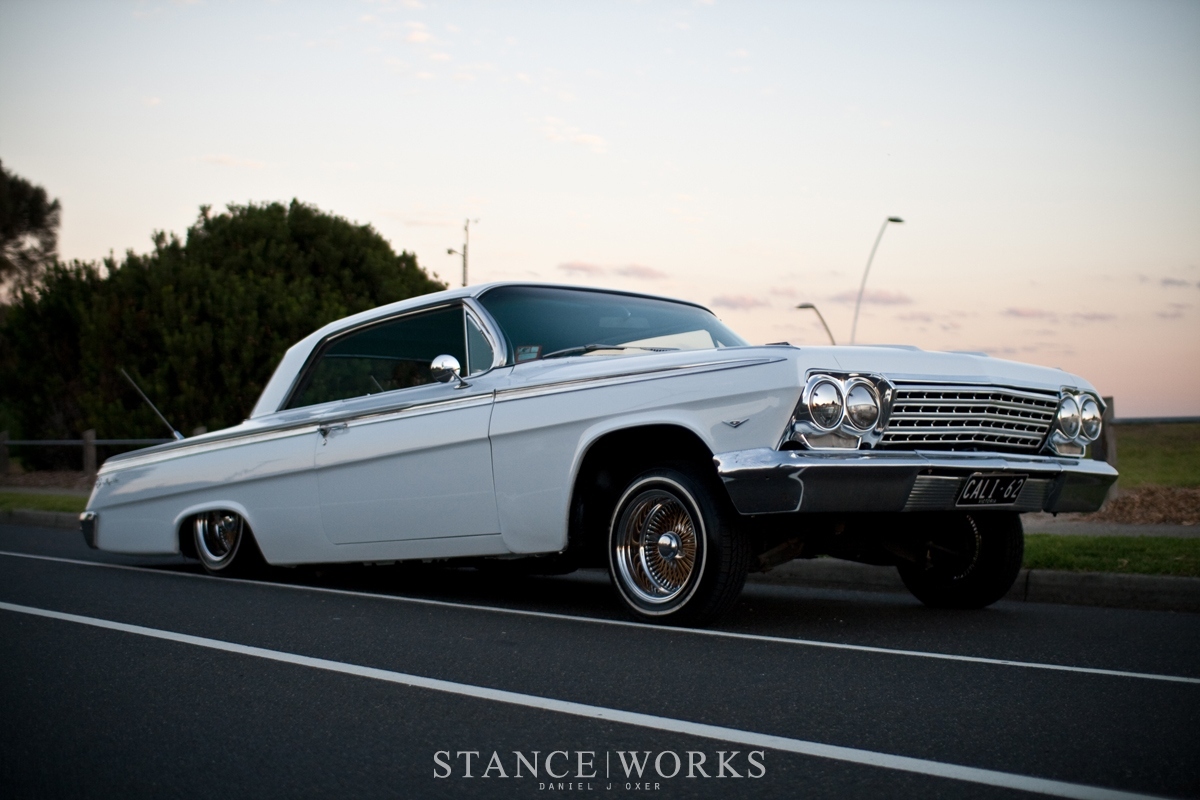 Iar cum pasiunea nu cunoaşte graniţe, ne îndreptăm privirea spre Australia, unde cei de la Stance Works au stat de vorbă cu Ben Clarke, posesorul unui Chevy Impala din 1962. Este vorba despre a treia generaţie de Impala, produsă între 1961 şi 1964. Nu o să vorbim despre motoare, pentru că punctul de interes sunt suspensiile şi feeling-ul oferit de maşină.