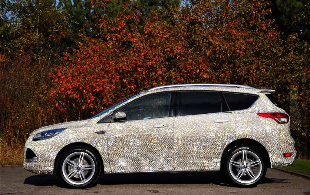 Se pare că este o metodă de a face un Ford Kuga să fie opulent, în aceeaşi măsură în care poţi să faci un Tata Nano să fie opulent: să-l acoperi cu pietre preţioase. Conform băieţilor de la autoevolution.com, există un atelier din Marea Britanie care îţi poate monta diamante şi cristale pe toată caroseria Fordului Kuga. Preţul este unul rotund: un milion de lire sterline.