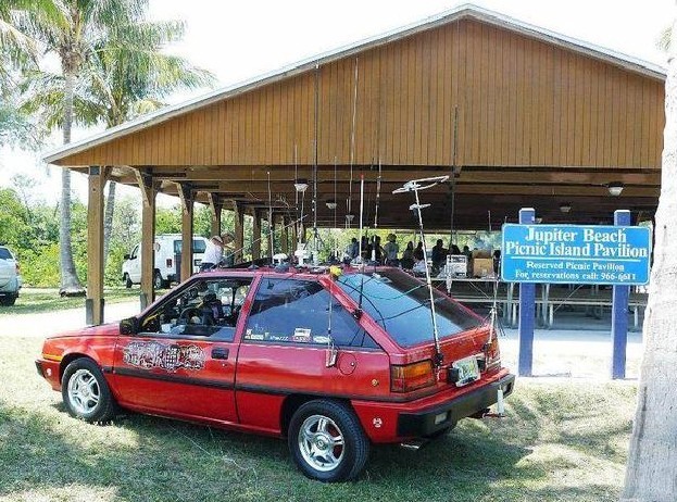 Maşina de faţă, un Mitsubishi Colt din anii ’80, nu pare să aibă nimic special, în afara un jante din aliaj şi a unui număr curios de mare de antene pe acoperiş şi hayon.