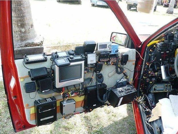 Nu ne dăm seama dacă vorbim de un pasionat al gadgeturilor sau de un obsedat care a ţinut cu tot dinadinsul să-şi transforme maşina într-un birou mobil.