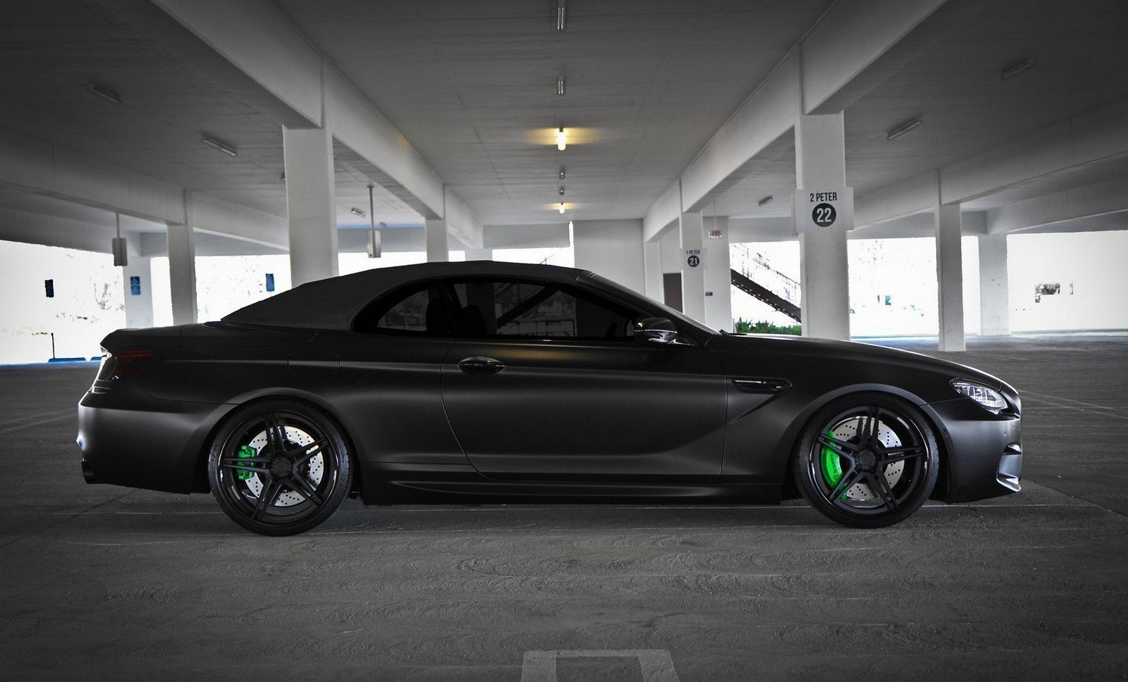 Maşina a fost plasată şi mai aproape de sol cu ajutorul unor suspensii sport H&R, nu înainte de a fi încălţată cu un set de jante ADV.1 asortate cu etrierele vopsite în verde.