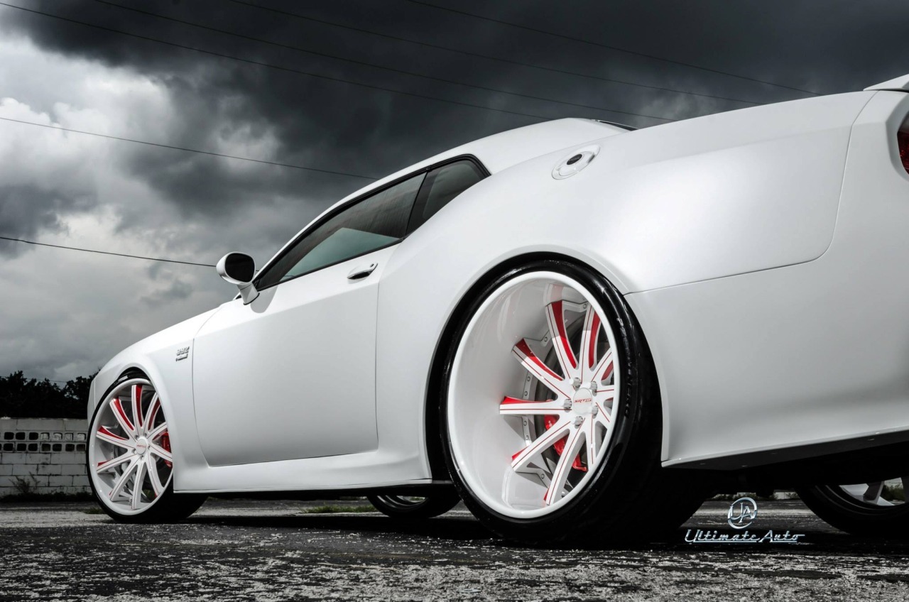 Nu doar atât, maşina primeşte şi un set de jante finisate, de asemenea, în principal în alb mat, surpriza fiind că roţile din spate au o lăţime de 15 inci (381 mm), fiind încălţate cu pneuri super late, având 405 mm lăţime (prin comparaţie, cauciucurile unui Veyron au ”doar” 365 mm lăţime…).