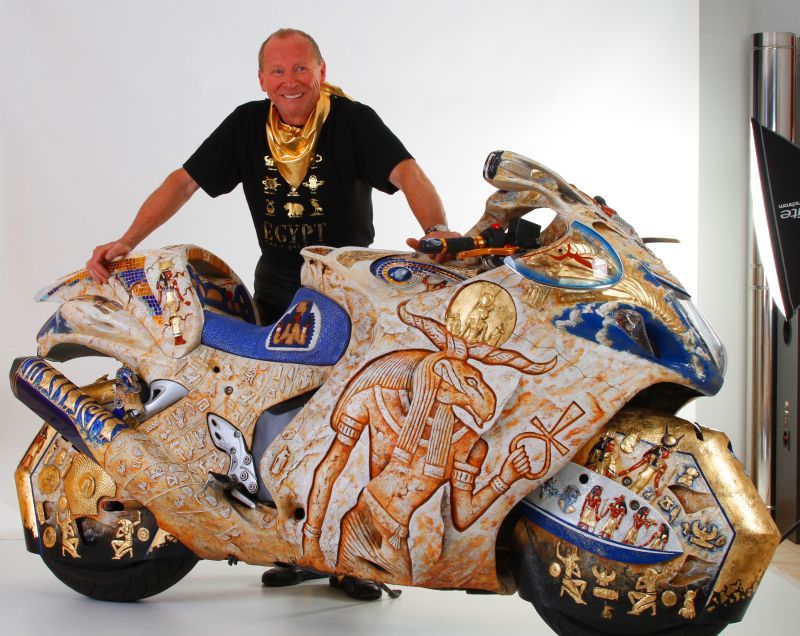 Şi mai interesant este că motocicleta nu e concepută doar ca o piesă de muzeu, ci e folosită intensiv de creatorul ei – ceea ce i-a şi adus porecla de ”Faraonul austriac”. Iar obsesia nu se încheie aici: Georg Ehrschwendner a conceput chiar şi o costumaţie moto care să se asorteze cu Hayabusa Pharaoh…