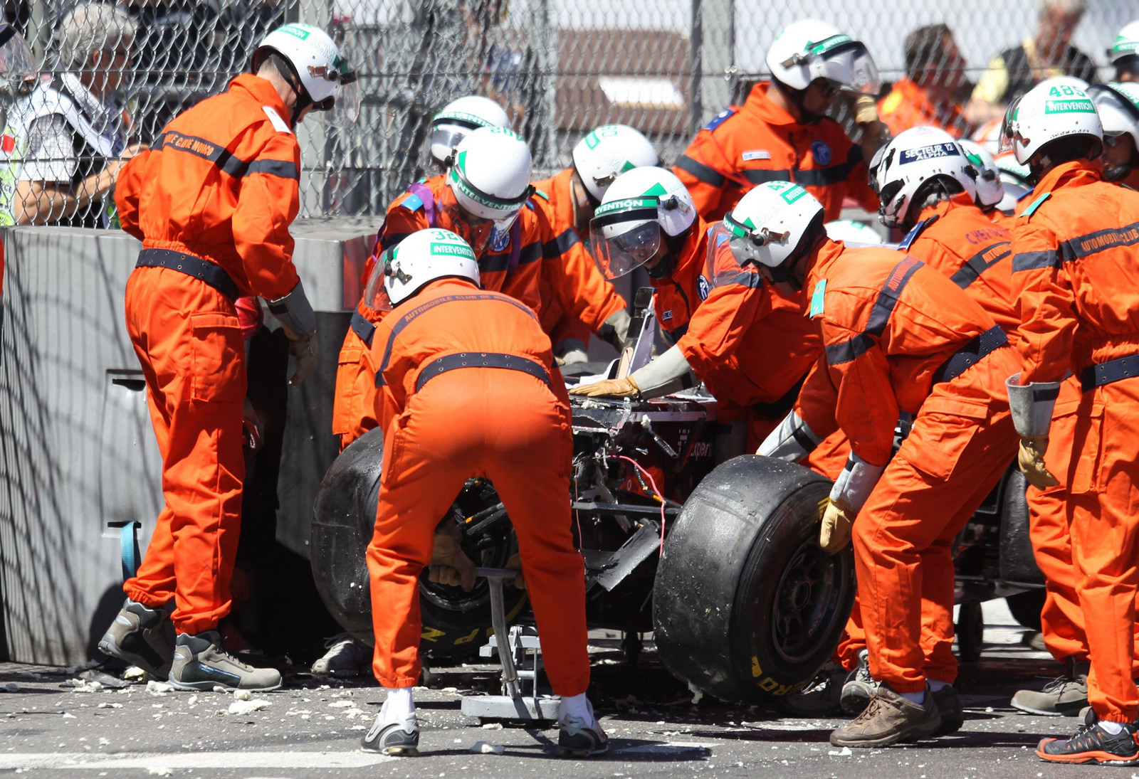 Primul care a abandonat a fost Charles Pic de la Caterham. El a parcurs doar şapte tururi, după care a ieşit de pe pistă din cauza unei defecţiuni la cutia de viteze. În turul cu numărul 28, Felipe Massa de la Ferrari a avut parte de un accident tras, parcă, la indigo. În timpul antrenamentelor, brazilianul a intrat în parapetele de protecţie, iar în timpul cursei a lovit maşina în exact aceeaşi curbă. Spre deosebire de accidentul de la antrenamente, când a fost vorba despre o eroare de pilotaj, accidentul de duminică a fost cauzat de o problemă tehnică.