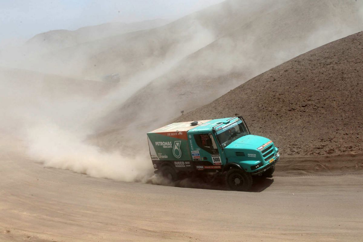 La categoria camioane, olandezul Gerard de Rooy a câştigat a patra lui etapă a acestui Dakar şi îşi menţine poziţia de lider în clasamentul general, cu un avans de 18 minute şi 40 de secunde în faţa rusului Eduard Nikolaev pe Kamaz.