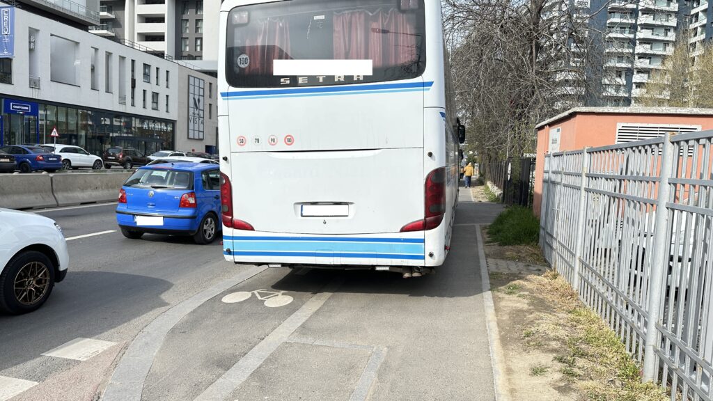 Parcarea pe pistele pentru biciclete este o greșeală frecventă a șoferilor, mulți nefiind atenți la marcajul sau indicatoarele rutiere. Sau pur și simplu nu își dau seama că acel spațiu este dedicat exclusiv bicicliștilor.