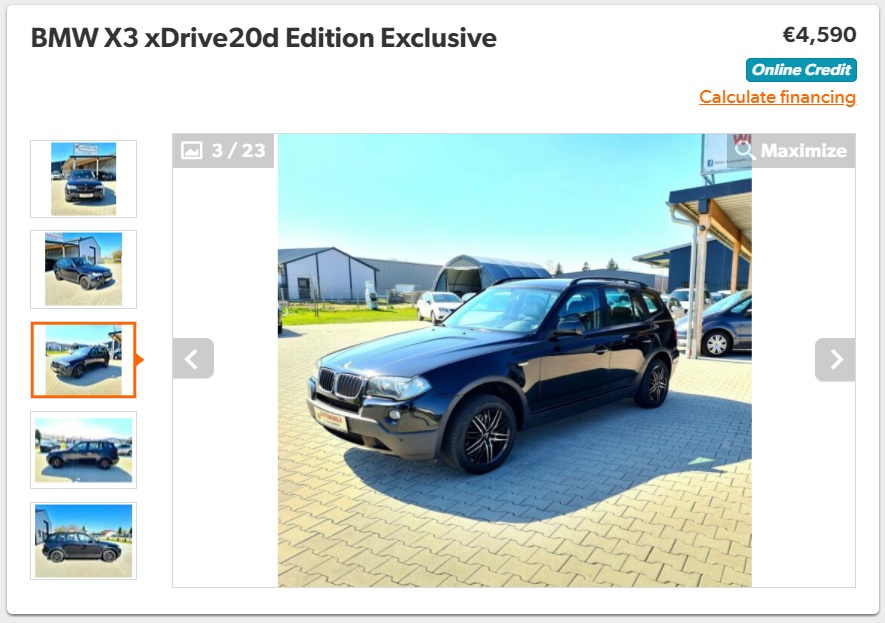 3.BMW X3 (2008) – motor diesel – rulaj 270.000 km – 4,590 de euro