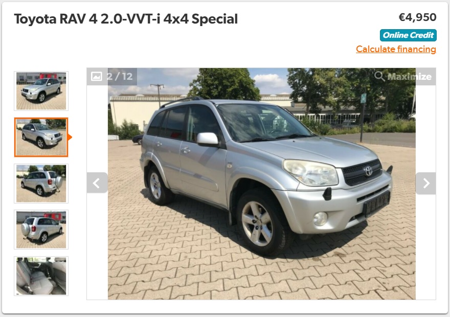 4. Toyota RAV 4 (2005) – motor benzină – rulaj 156.000 km – 4,950 de euro