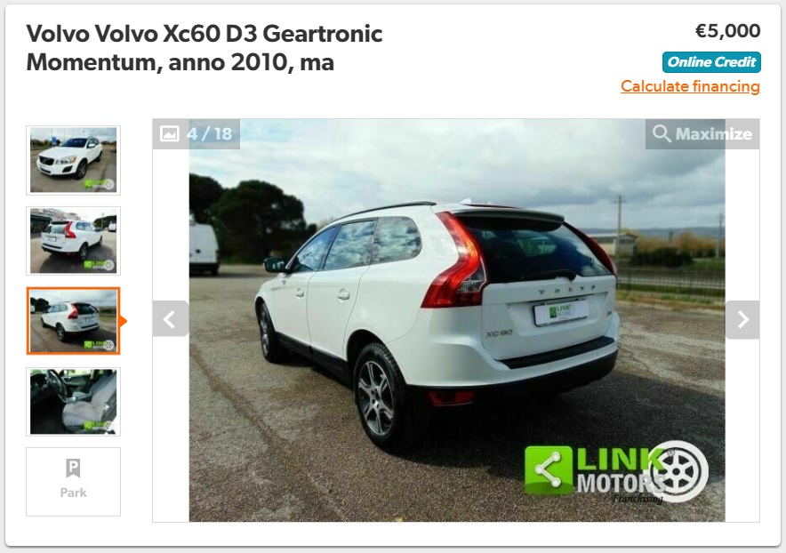 2.Volvo XC60 (2010) – motor diesel – rulaj 340.000 km – 5,000 de euro