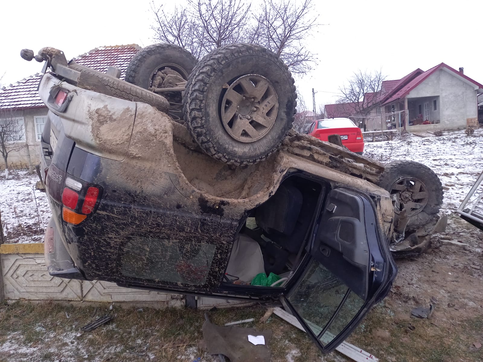 La fața locului au fost deplasate și două ambulanțe tip B aparținând SAJ Vaslui. La sosirea echipajelor de intervenție a fost găsit un autoturism ieșit în afara carosabilului, răsturnat peste un gard din beton.