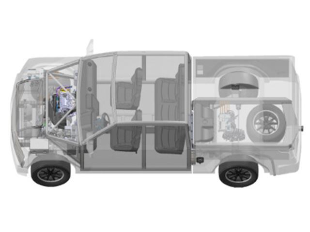 Bateriile au fost integrate în carcasă pentru o rezistenţă sporită şi pentru a reduce centrul de greutate. Împreună, sistemul ar trebui să fie în măsură să furnizeze 80 de mile (aproximativ 128 de km) de conducere fără emisii. Compania intenţionează să integreze şi un motor pe benzină care să aibă rol de generator, iar autonomia noului pickup urmând să ajungă la 500 de kilometri.